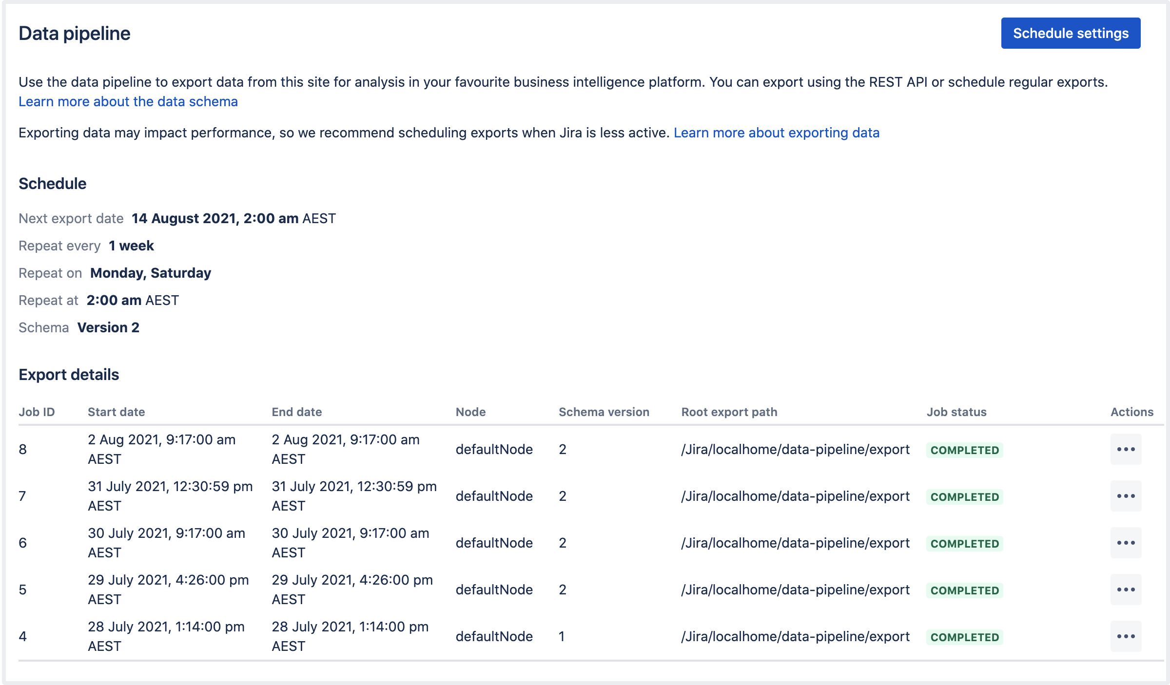 • <local-home>/data-pipeline/export/<job-id> クラスタ化されていない Jira を使用している