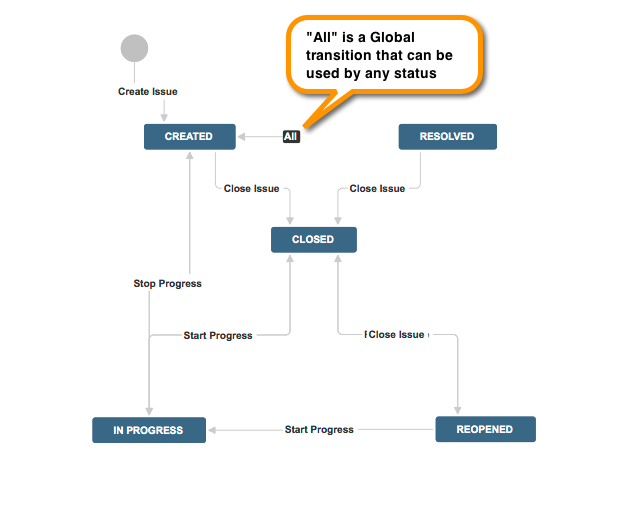 グローバル トランジション により、ワークフローの任意のステータスを特定のステータスにトランジションできます。