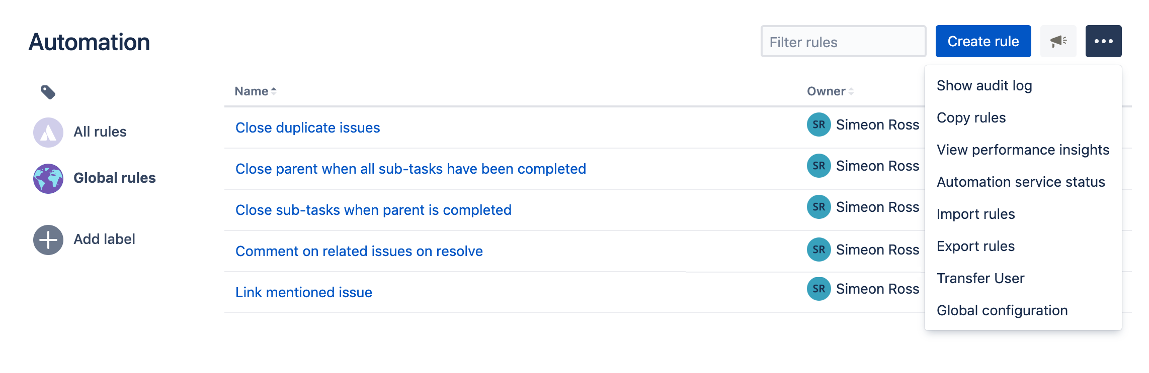 あるユーザーから別のユーザーに Jira Automation のルールを転送する