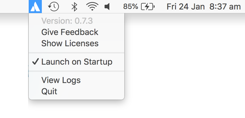 Companion は起動後、バックグラウンドで実行されます。インストールしたバージョンを確認するには、メニュー バーでのステータス領域で Companion アイコンをクリックします。