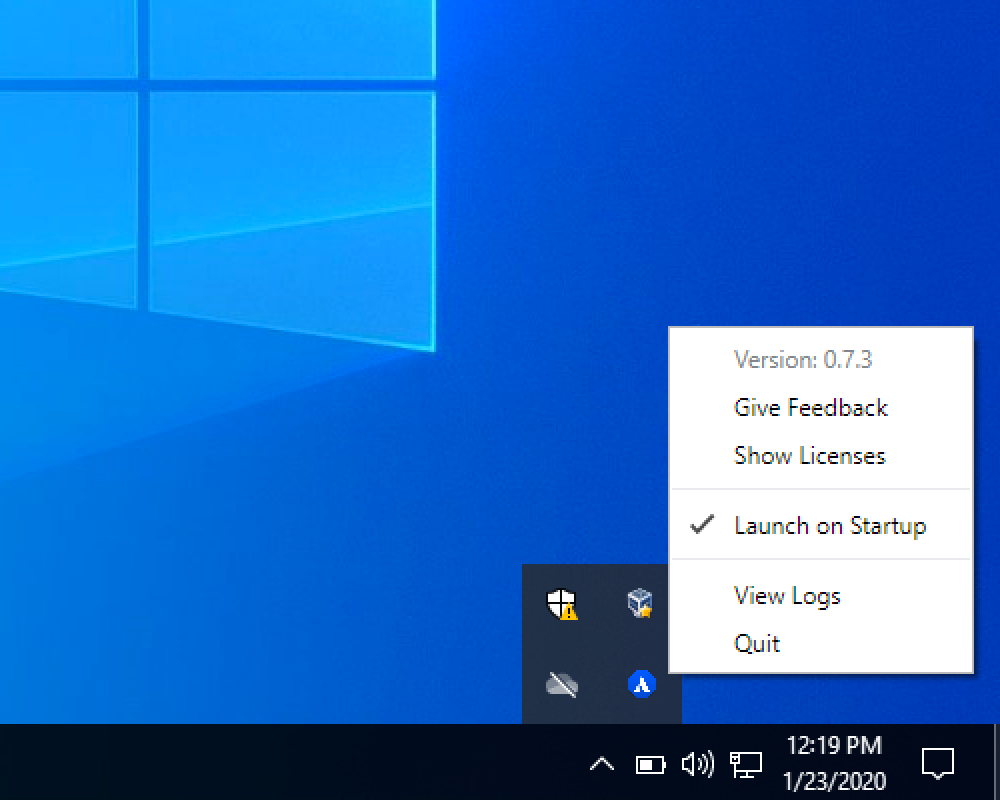 Companion はインストール後、バックグラウンドで実行されます。アプリを確認するには、システム トレイの [Show hidden items] 矢印をクリックする必要がある場合があります。インストールしたバージョンを確認するには、Companion アイコンを右クリックします。