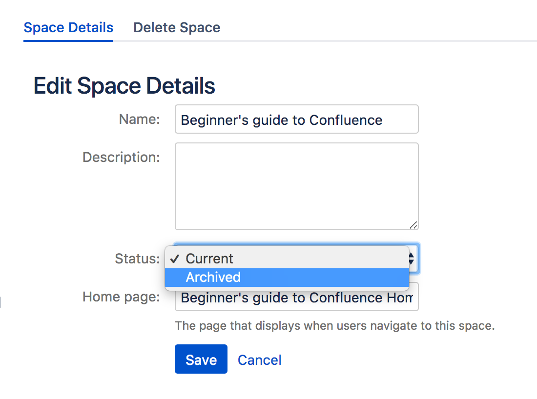 を入力することでアーカイブされたスペースに直接移動できます。サイドバーの下部でスペース ツール > 概要を選択します。