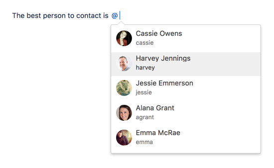 Confluence には、過去にメンションしたユーザー (自身を除く) が表示されます。