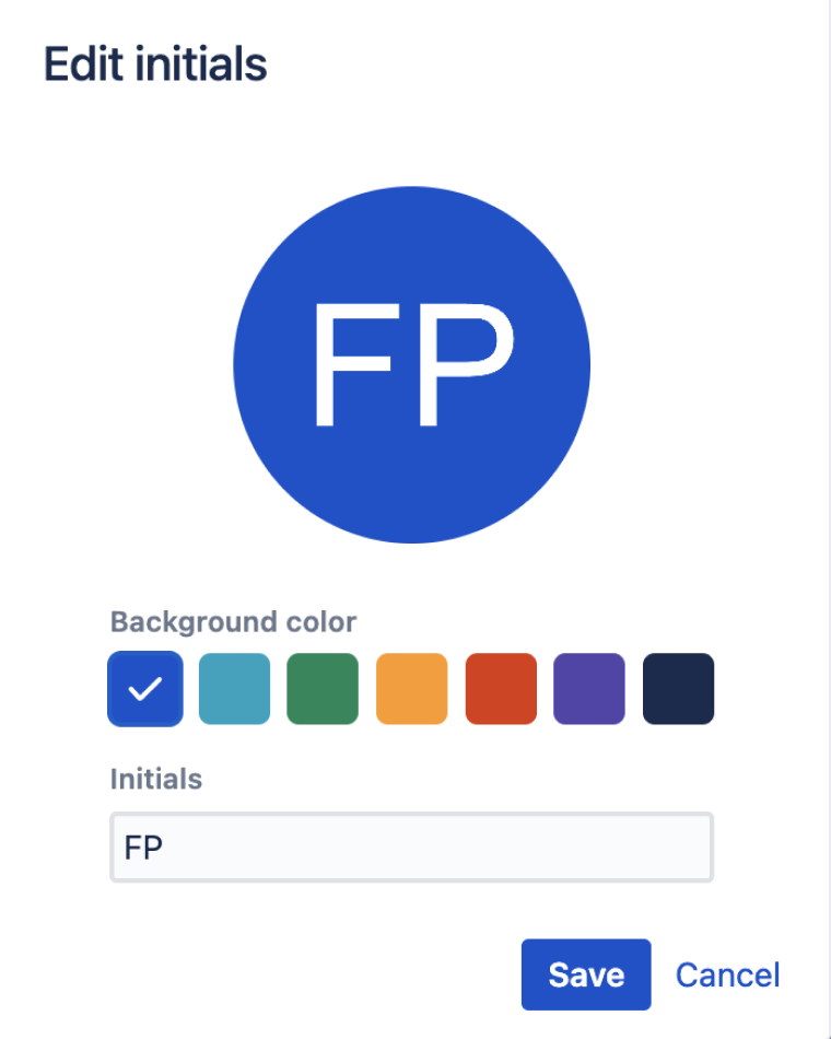 プロファイルに画像ではなくイニシャルを使いたい場合は、表示される背景色と最大 4 文字を選択できます。