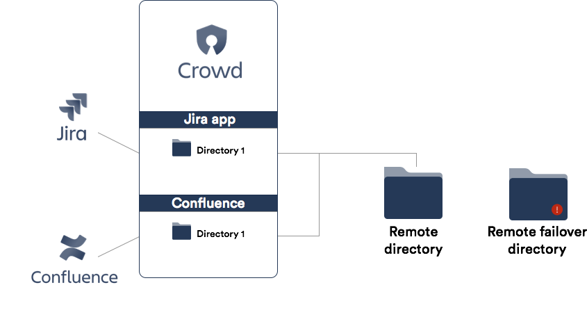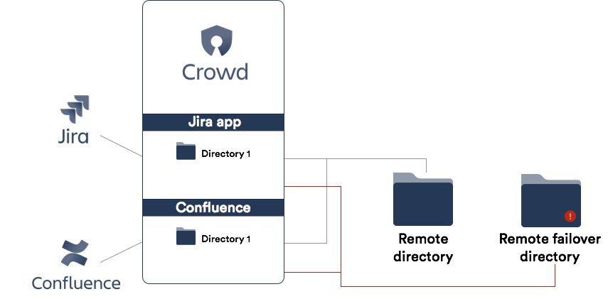 The following example shows a simple scenario, where a failover directory is added to Crowd.