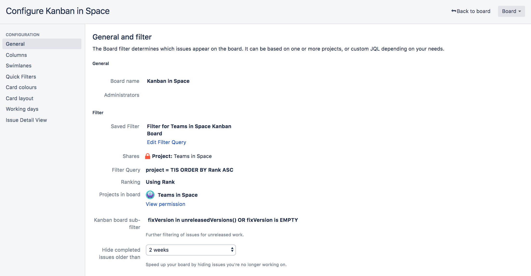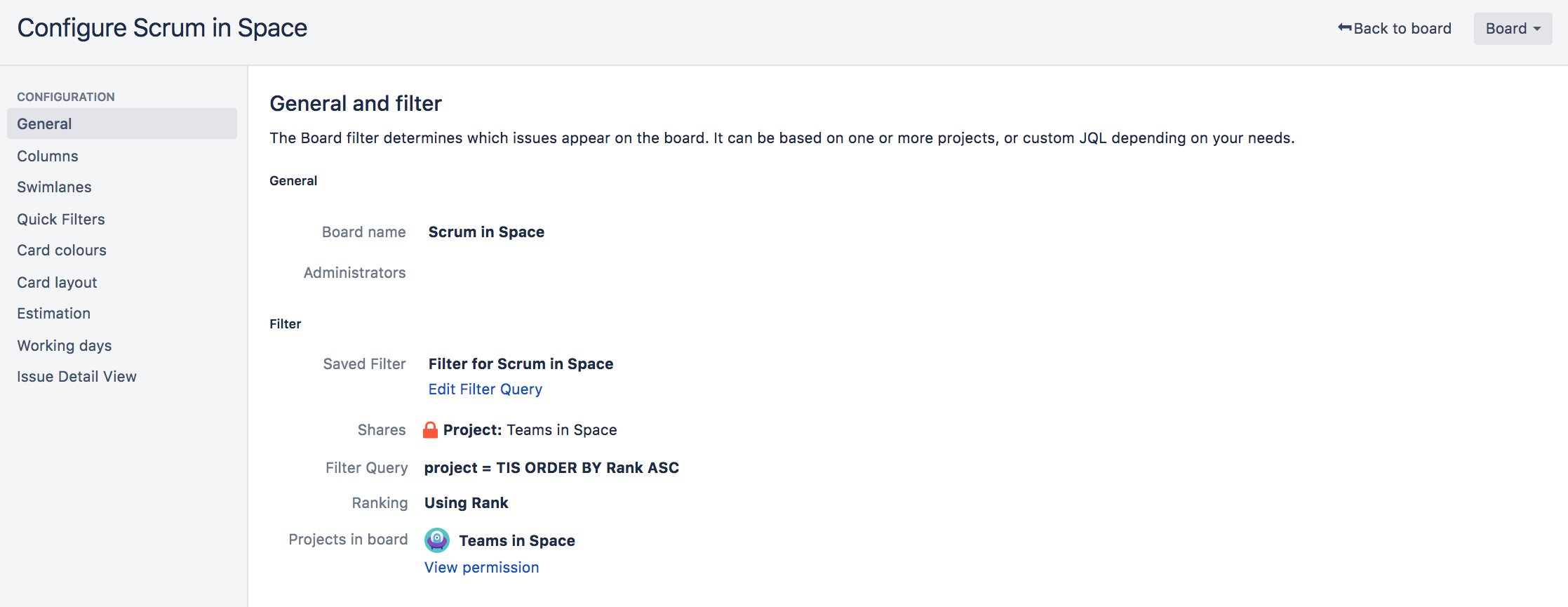 もし他の人とボードを共有したい場合は、保存フィルターの編集権限も必要でしょう。(課題フィルターのドキュメントを参照してください)、もしくは別のフィルターを選択してください。(フィルターの設定をするを参照ください)