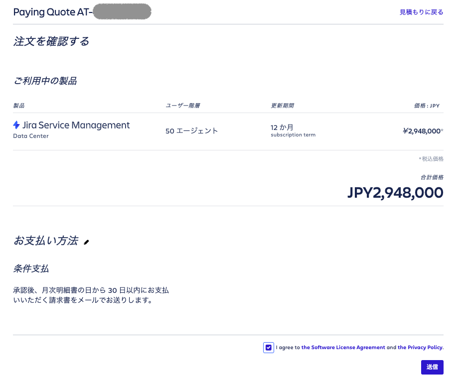 30日支払い条件の承認は、アトラシアンの独自の裁量によるものであり、信用調査を含みます。