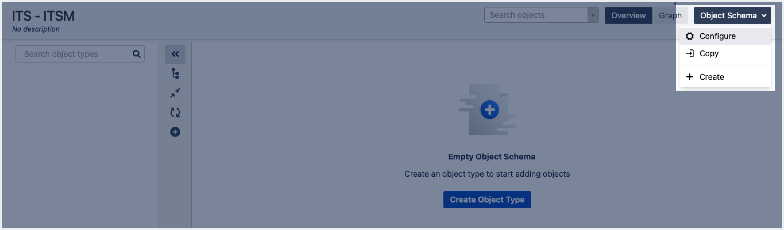 2. 右上の [オブジェクト スキーマ] ドロップダウン メニュー > [設定] の順に選択します。