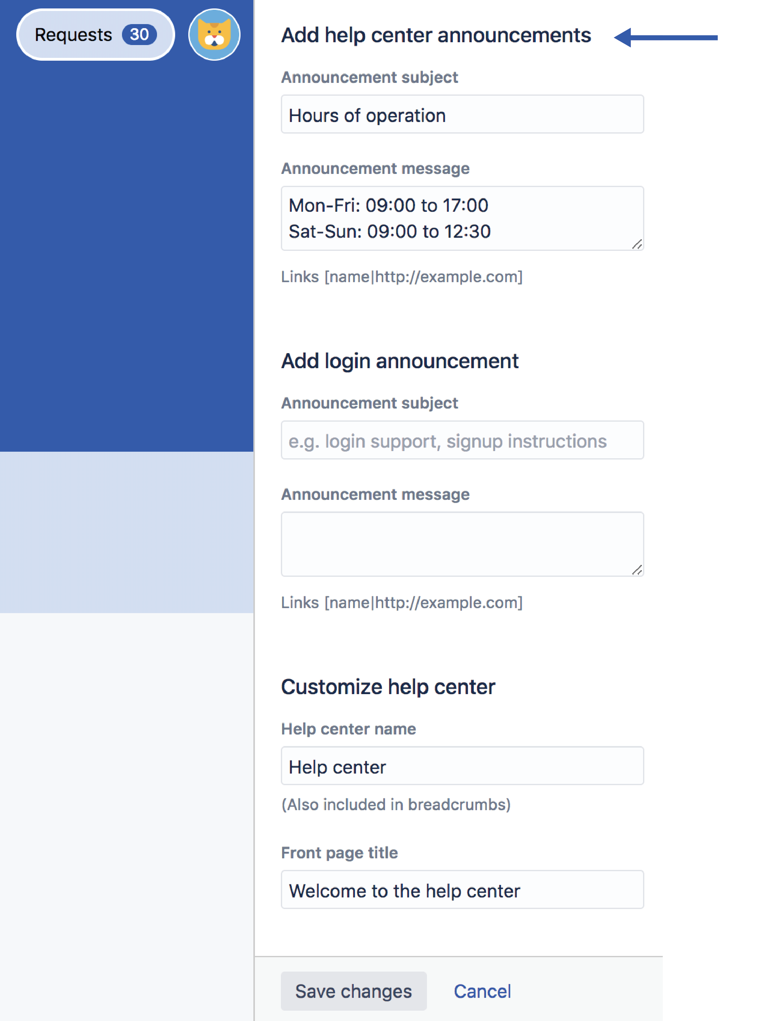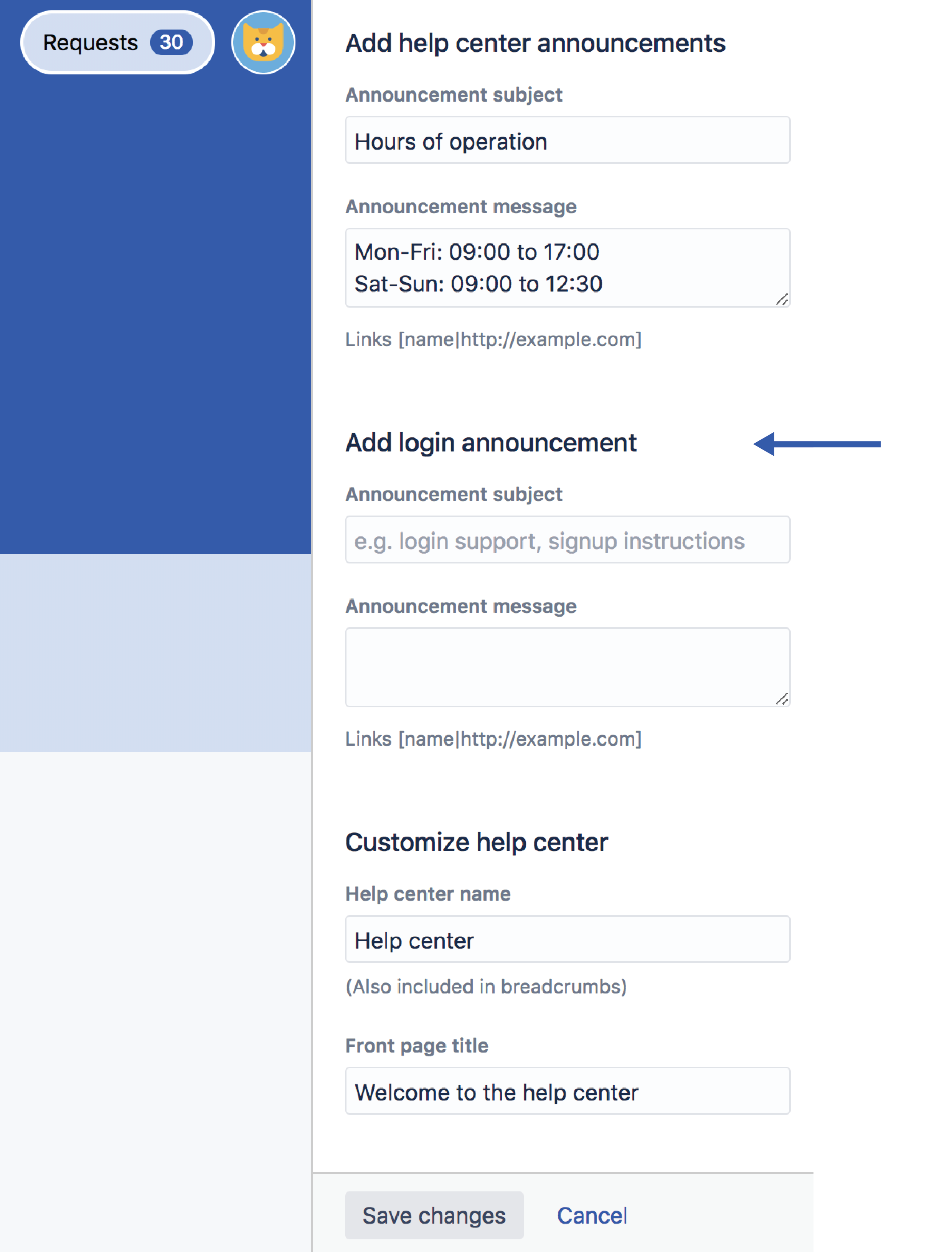 ヘルプ センターにお知らせを追加する権限をエージェントに付与できます。