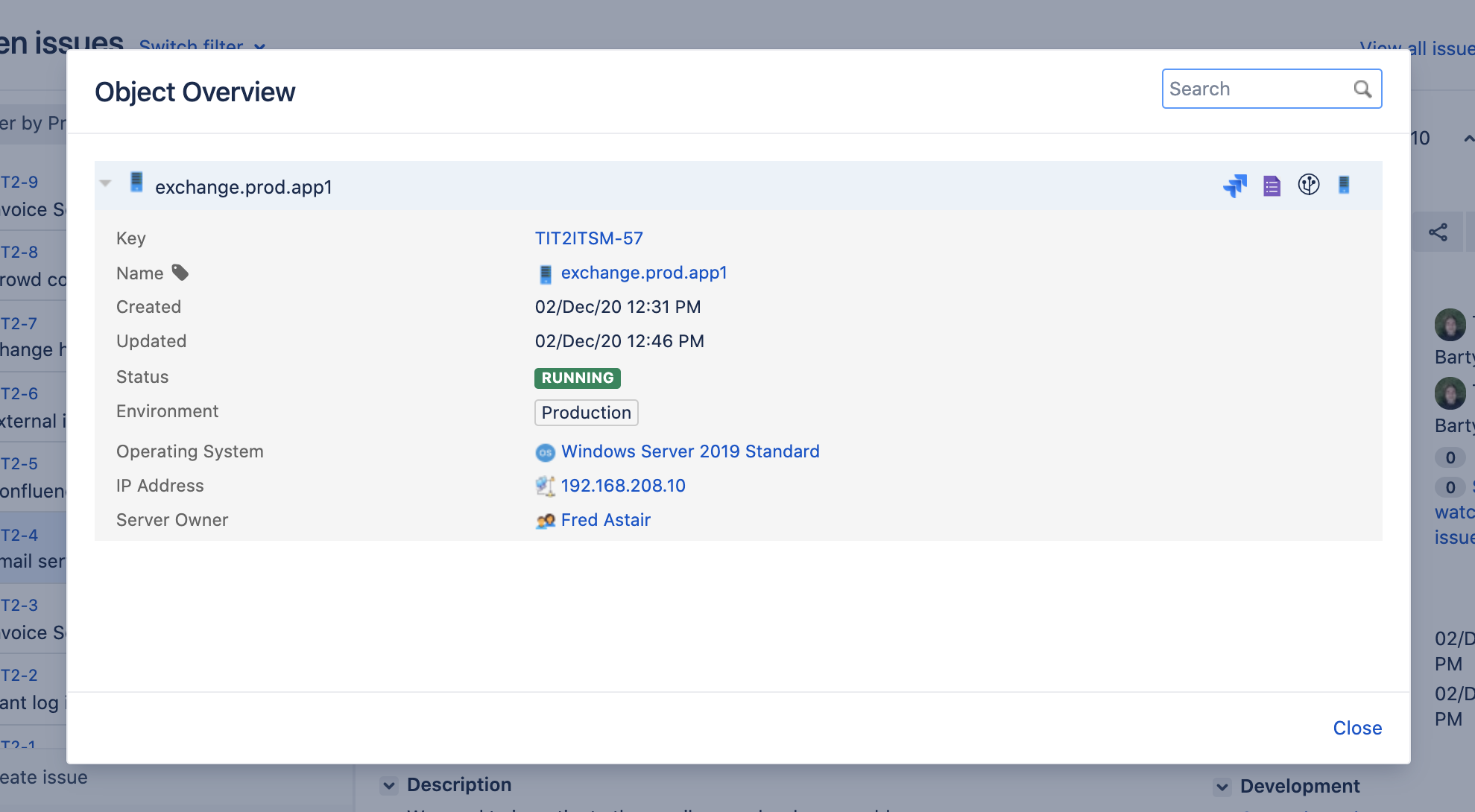 オブジェクトを Jira 課題に追加するとそのオブジェクトに関する情報が課題に直接表示されて、興味のあるすべてのユーザーに十分なコンテキストがもたらされます。ワークフローのセットアップ方法によっては、課題がワークフロー内を移動している際に、追加されたオブジェクトも影響を受ける可能性があります。