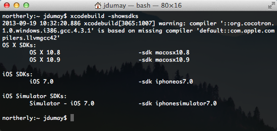 xcode-build -showsdksfrom the command line. - Log in as an administrator.