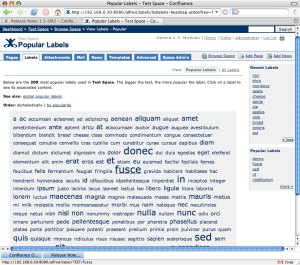 Another highly requested feature was the ability to categorise content within Confluence beyond the rigid heirarchy allowed by spaces and parent-child relationships between pages. To this end we have introduced labels: simple one-word 'tags' that can be added to any page or blog-post the user has permission to edit. Labels can be used to categorise content, bookmark it, flag it for attention, or anything else you can think of.