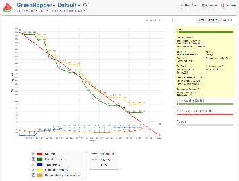 The GreenHopper Chart Board provides you with a graphical representation of the progress of ongoing versions. You can view 'burndown' graphs that show the number of incomplete issues that need to be addressed or hours remaining to complete work for a specified version, over the duration of that version. You can also view 'burnup' graphs to show other custom data associated with issues, such as business value.